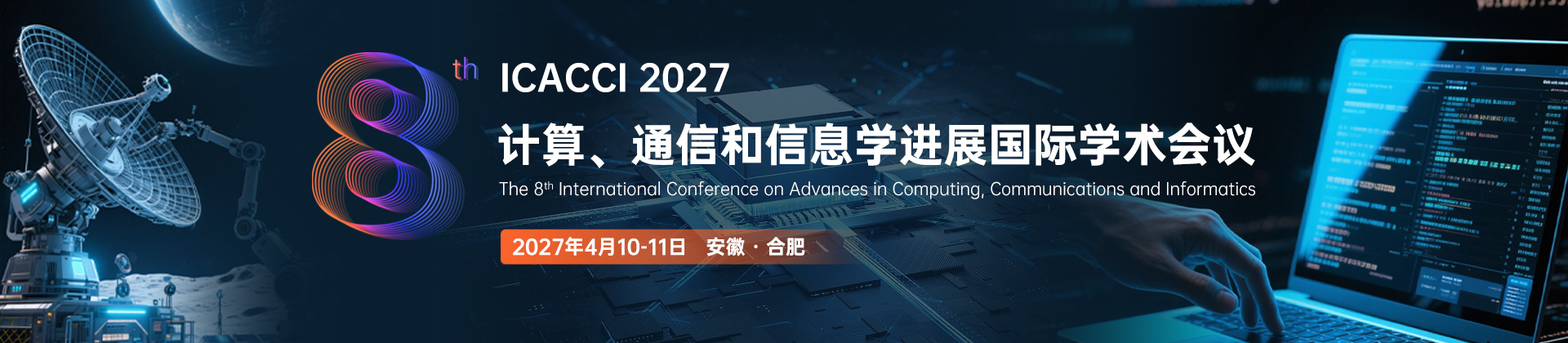 The 8th International Conference on Advances in Computing, Communications and Informatics(ICACCI 2027)will be held on April 10-11, 2027 in Anhui, China. ICACCI 2027 is to bring together innovative academics and industrial experts in the field of Computing, Communications and Informatics to a common forum. The primary goal of the conference is to promote research and developmental activities in Computing, Communications and Informatics and another goal is to promote scientific information interchange between researchers, developers, engineers, students, and practitioners working all around the world. The conference will be held every year to make it an ideal platform for people to share views and experiences in Computing, Communications and Informatics and related areas.