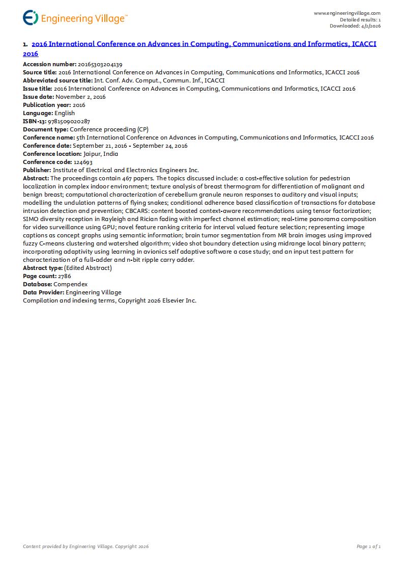 The 5th International Conference on Advances in Computing, Communications and Informatics(ICACCI 2016) has been held successfully in jaipur, India, during September 21-24, 2016.
